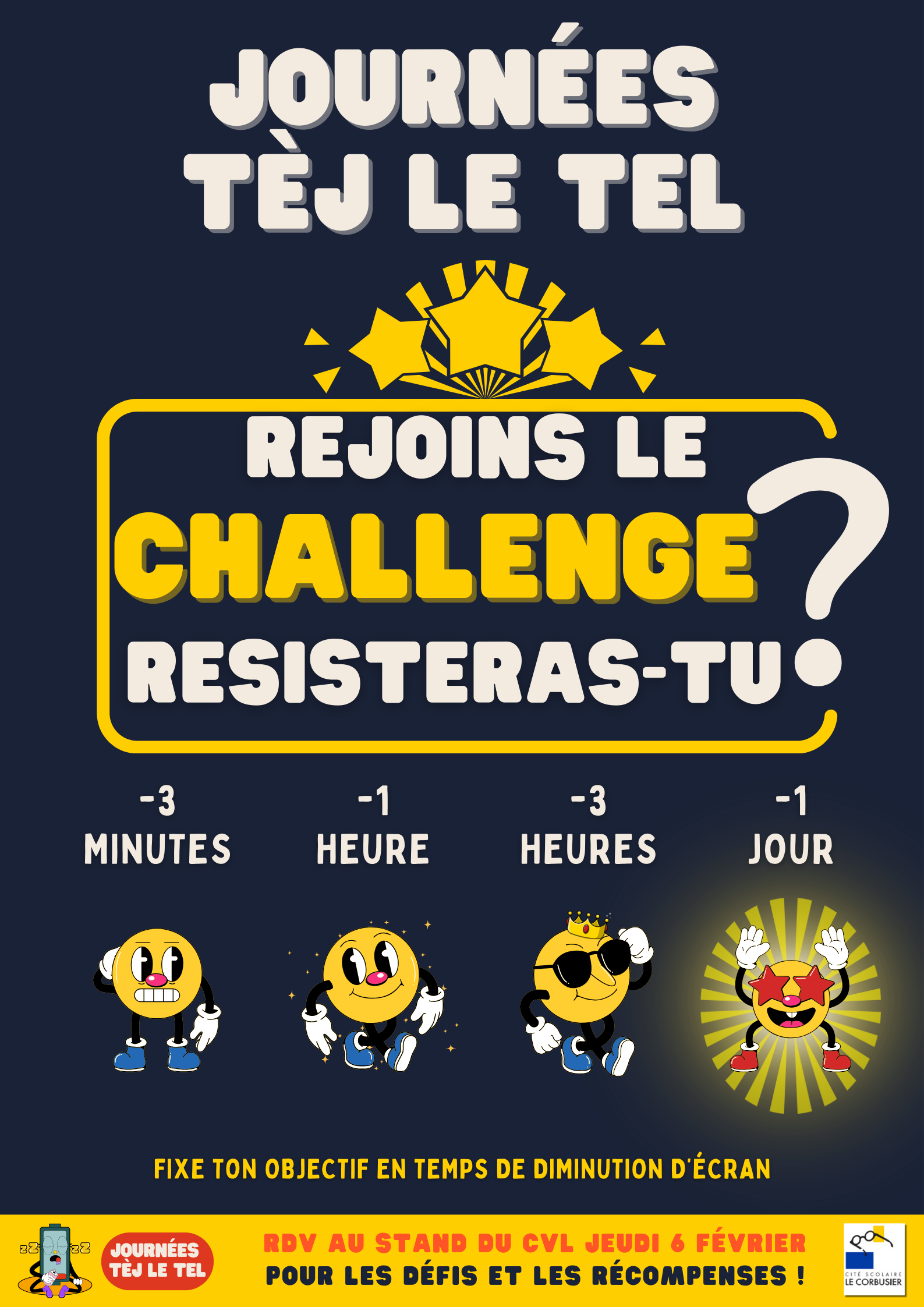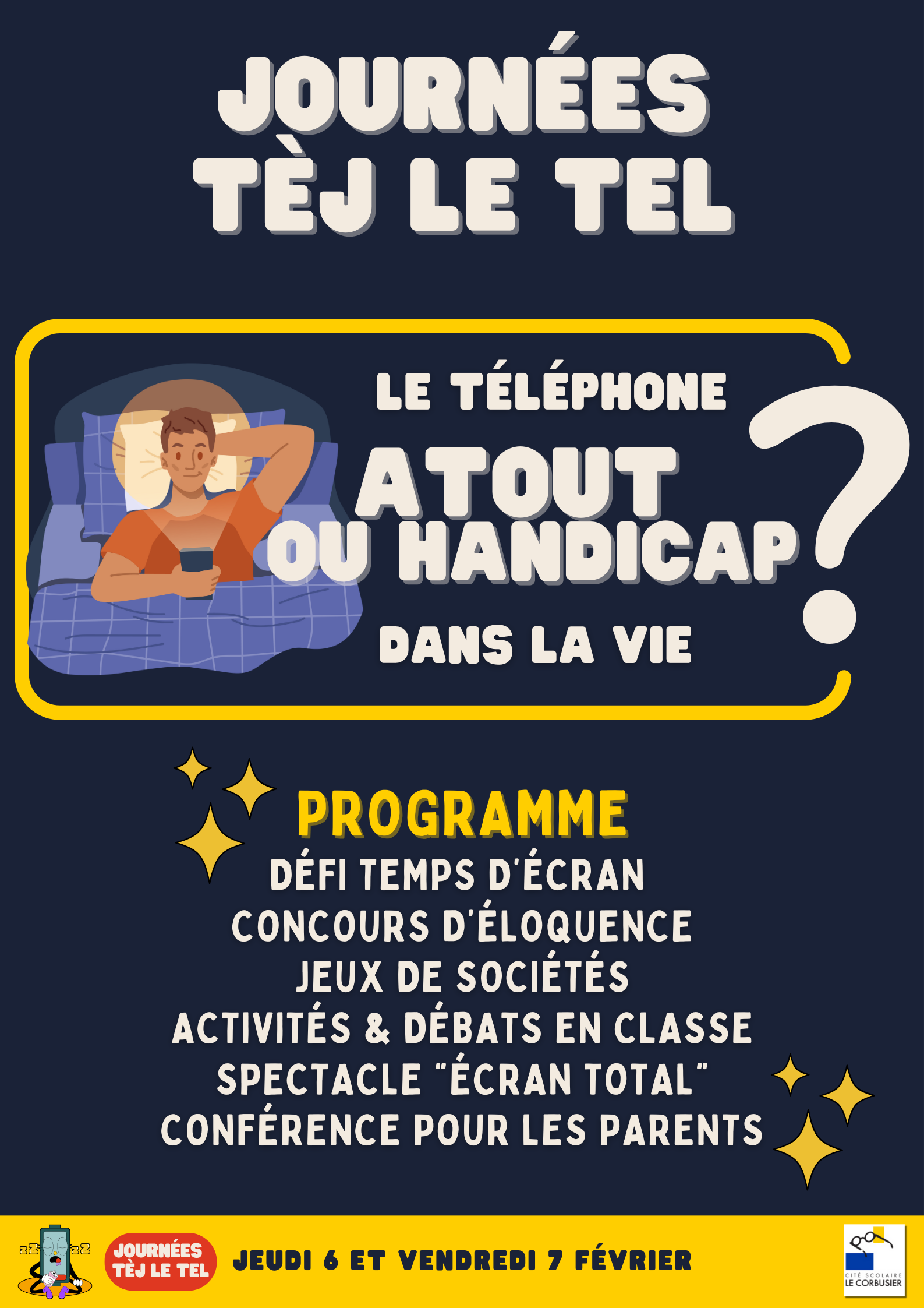 Cette année, le lycée Le Corbusier participera aux journées mondiales sans téléphones portables, rebaptisées "journées tèj le tel" au lycée.